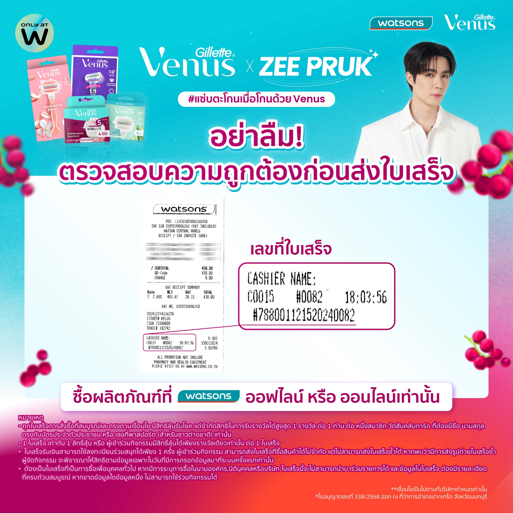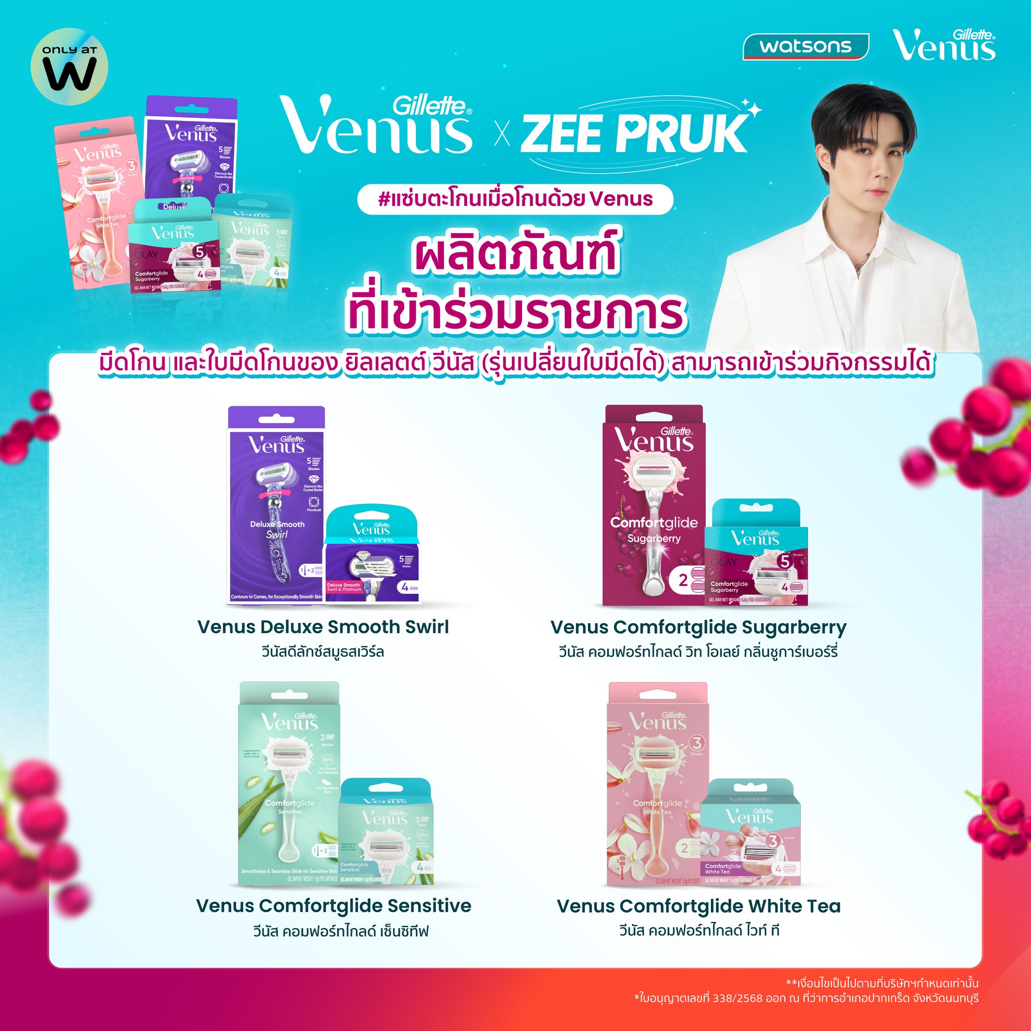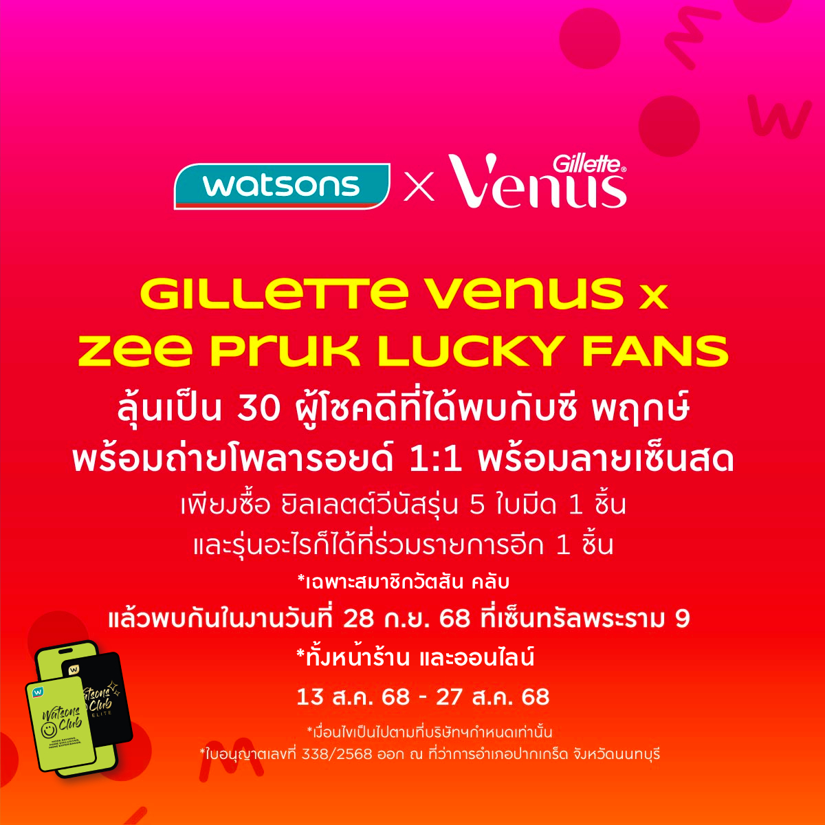 Gillette Venus ตามหาผู้โชคดี ที่อยากมีผิวเรียบเนียนสวย พร้อมร่วมลุ้นเป็น 30 Lucky Fans ที่จะได้พบกับ “ซี พฤกษ์” อย่างใกล้ชิด ถ่ายรูปโพลารอยด์ 1:1 พร้อมลายเซ็นสดกลับบ้านไปอย่างฟินๆ ! กับงาน “Gillette Venus x Zee” แซ่บตะโกนเมื่อโกนด้วย Venus 🪒✨?