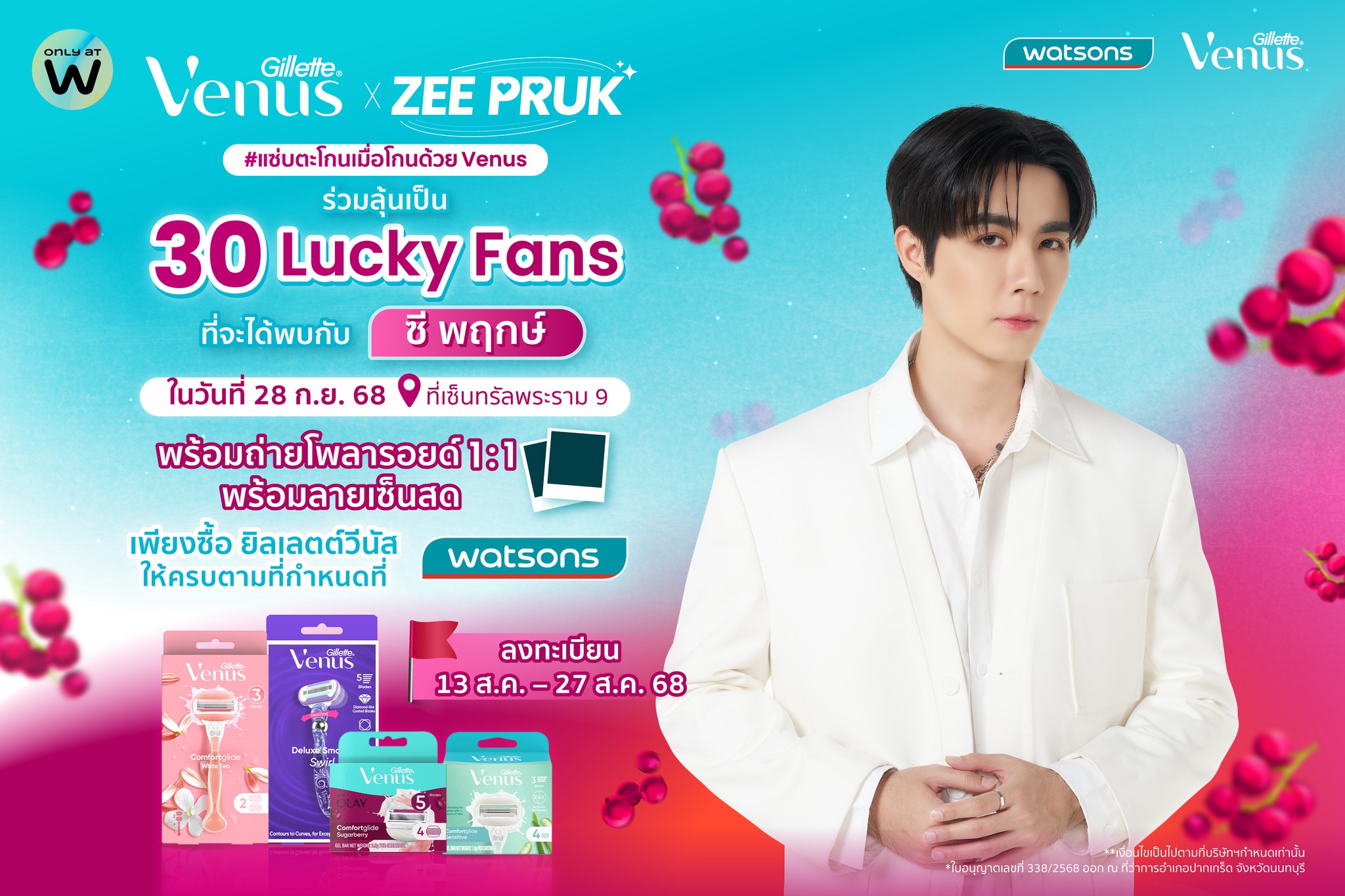 Gillette Venus ตามหาผู้โชคดี ที่อยากมีผิวเรียบเนียนสวย พร้อมร่วมลุ้นเป็น 30 Lucky Fans ที่จะได้พบกับ “ซี พฤกษ์” อย่างใกล้ชิด ถ่ายรูปโพลารอยด์ 1:1 พร้อมลายเซ็นสดกลับบ้านไปอย่างฟินๆ ! กับงาน “Gillette Venus x Zee” แซ่บตะโกนเมื่อโกนด้วย Venus 🪒✨?